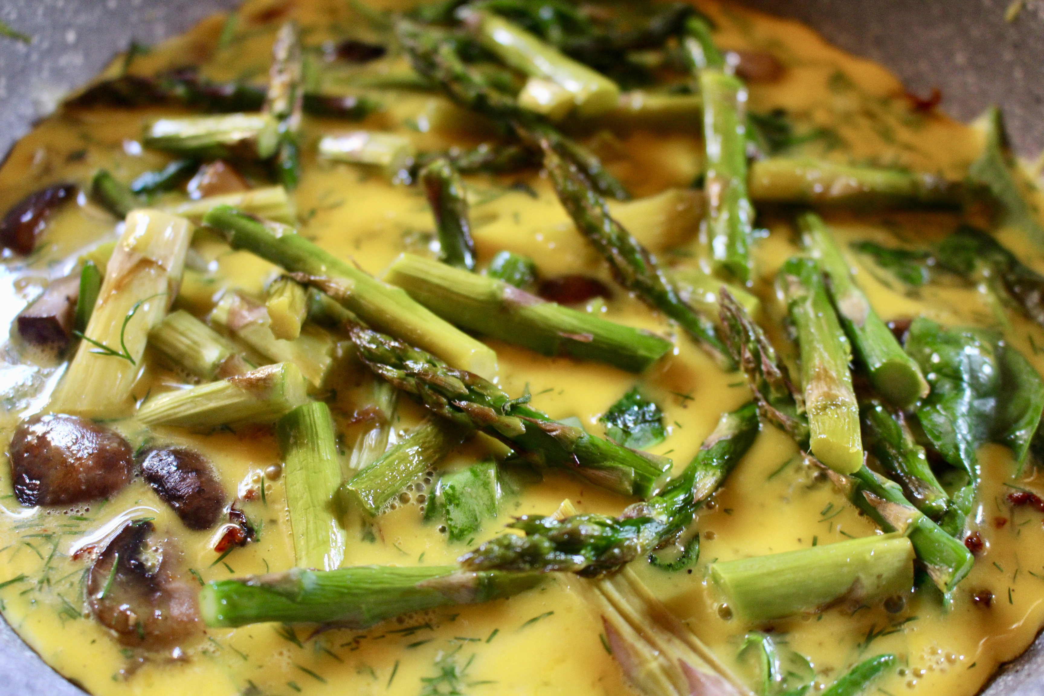 ASPARAGUS, MUSHROOM, & GOAT CHEESE FRITTATA