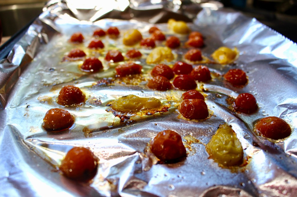 I like to add the tomatoes to the salad while they are still warm (but you can cool if you prefer). Roasting tomatoes intensifies their flavor and sweetness, however, you could skip roasting them and add them to the salad fresh.
