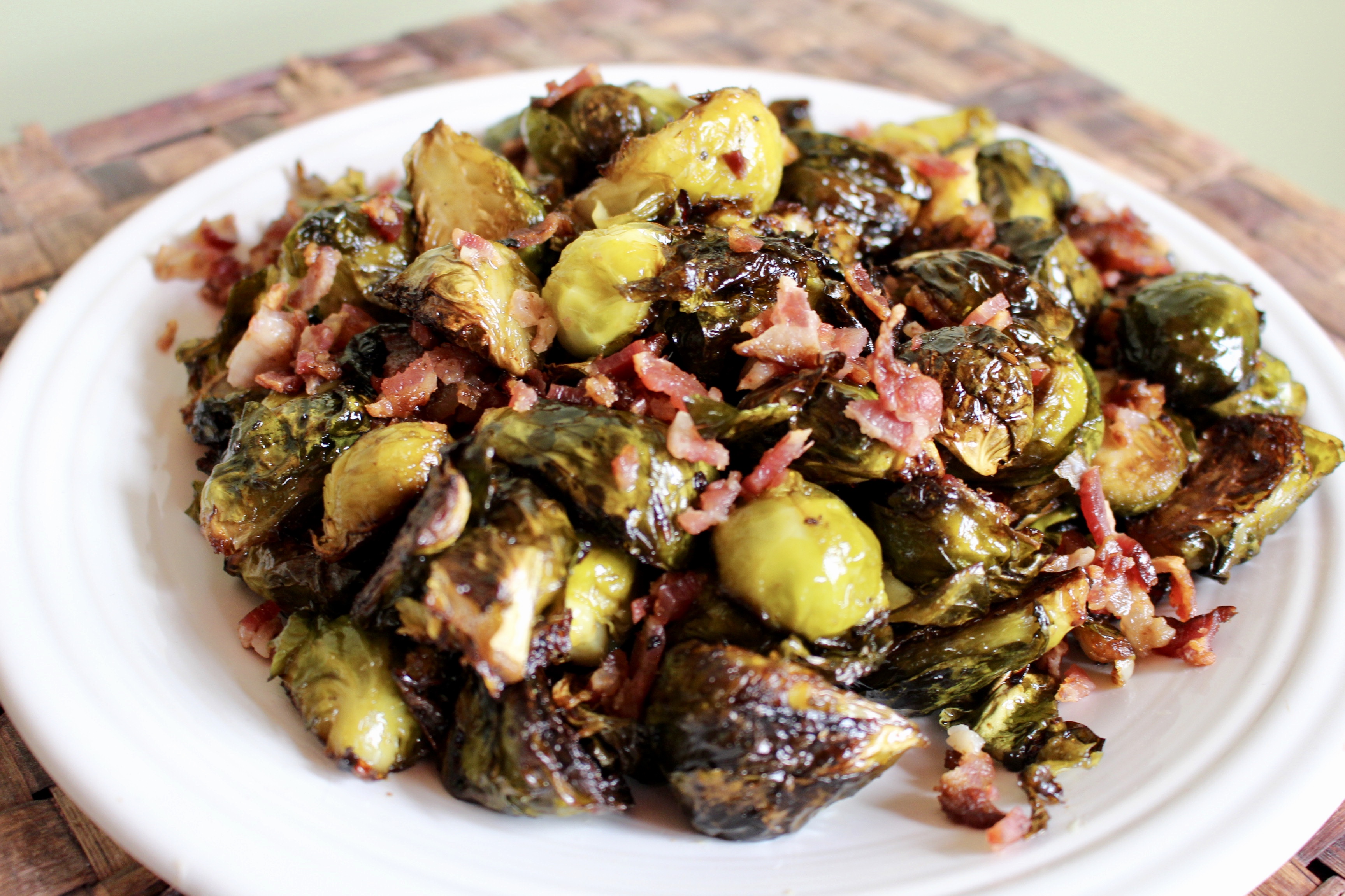 CRISPY MAPLE GLAZED ROASTED BRUSSELS SPROUTS WITH BACON