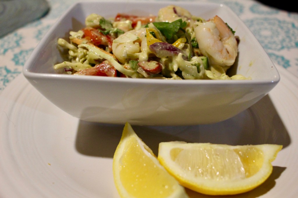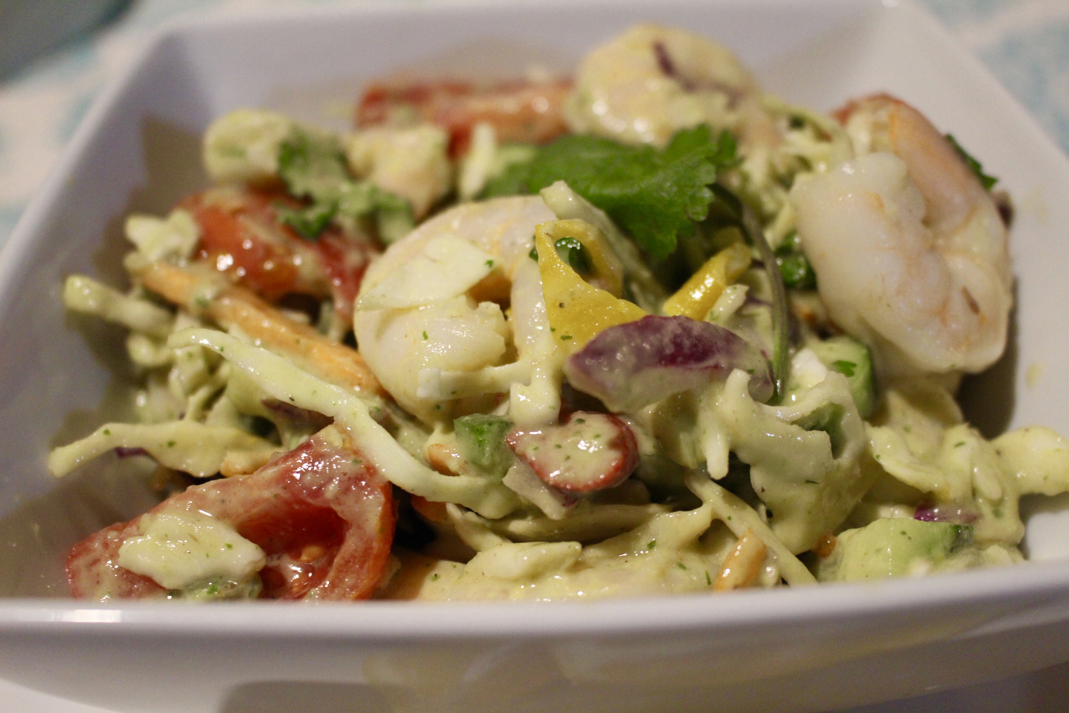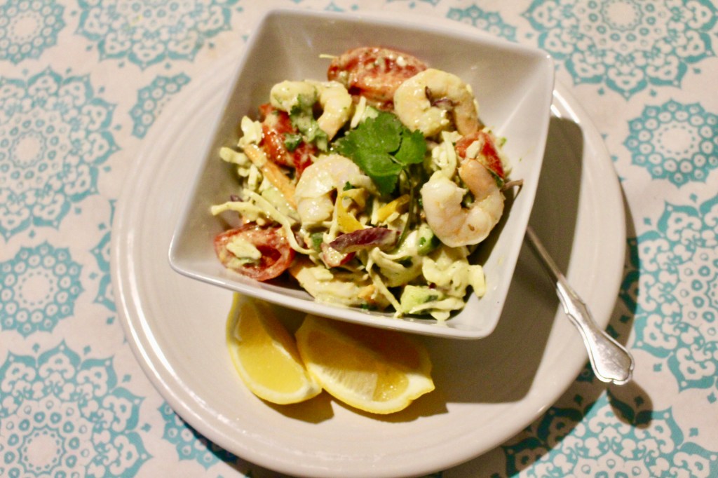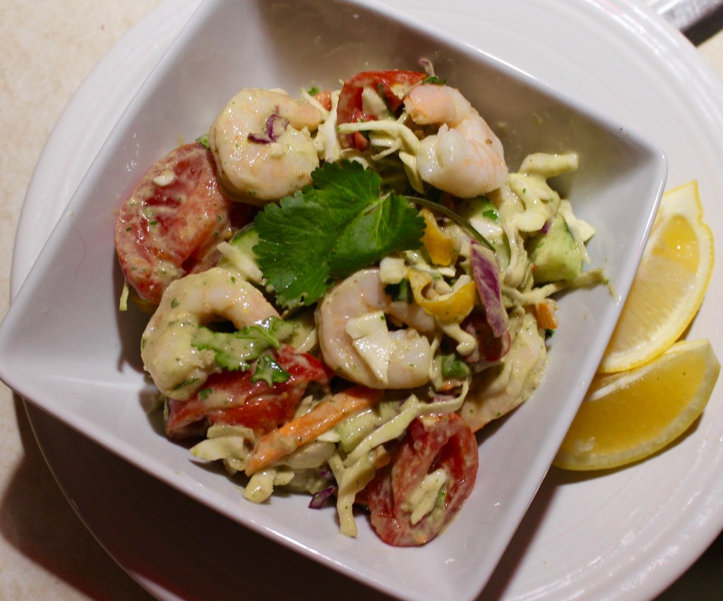 LEMONY SHRIMP SALAD WITH AVOCADO & CILANTRO DRESSING