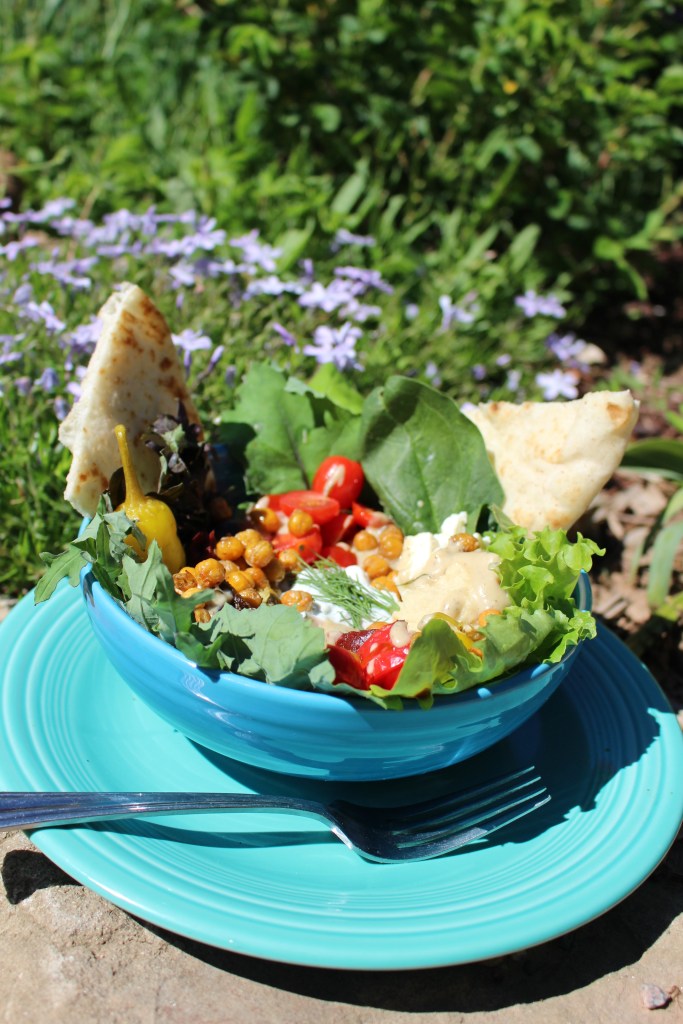 While taco bowls are a favorite, I decided to take advantage of garden cucumbers and fresh dill to bring this bowl together. While the protein in this bowl comes from chickpeas, tahini, and hummus – you could also add chicken, steak, or pork roast (it is a great way to use up leftovers).