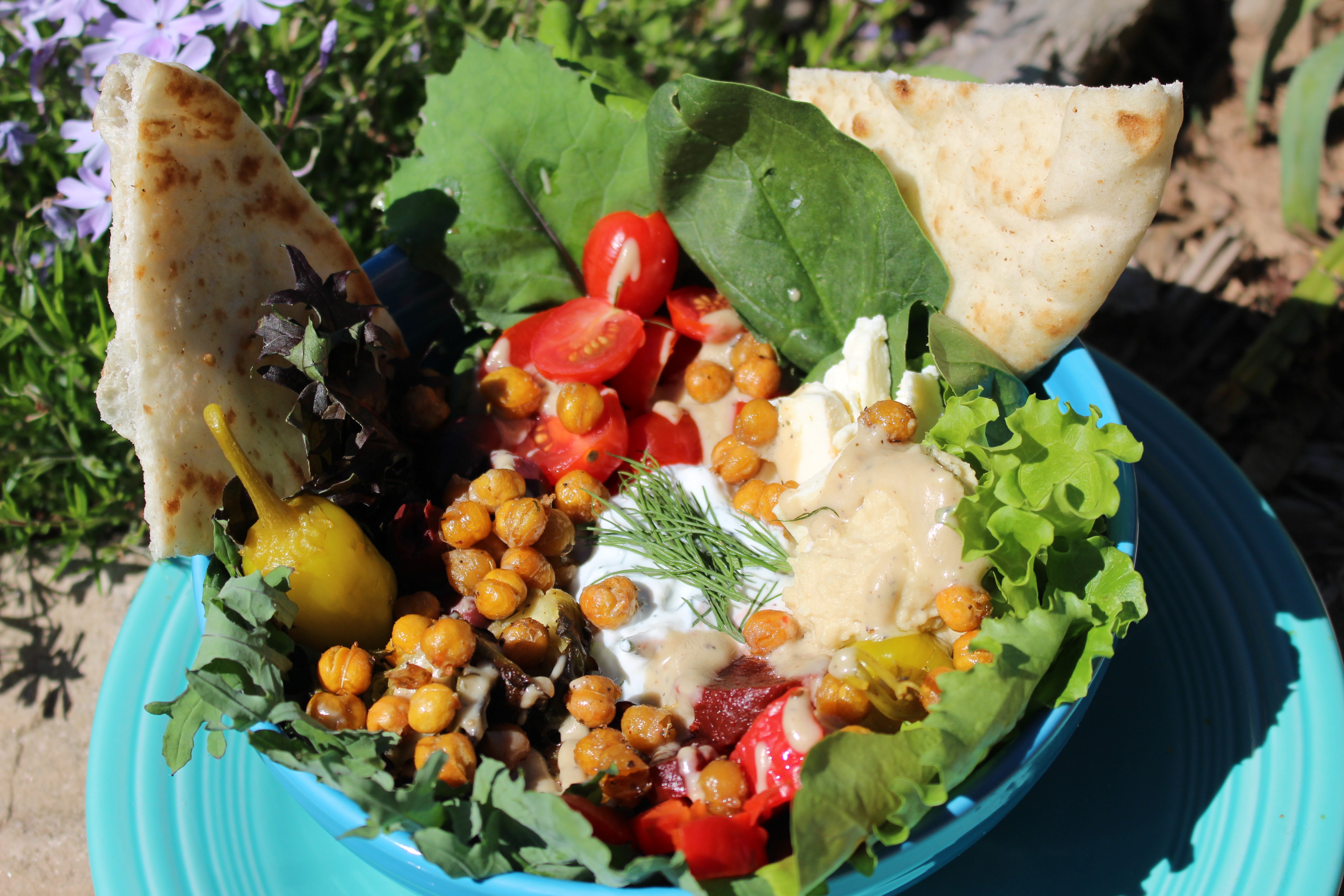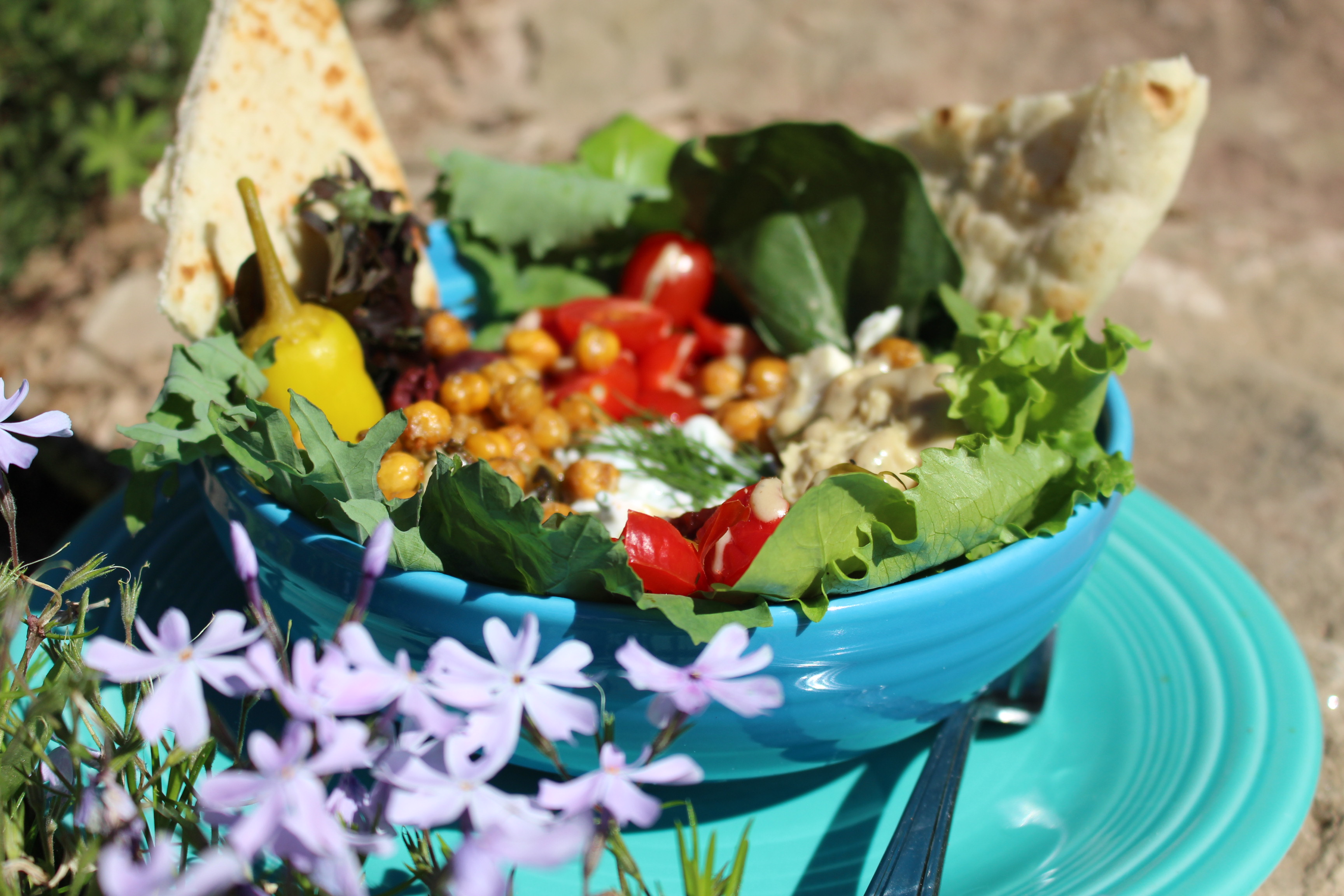 While taco bowls are a favorite, I decided to take advantage of garden cucumbers and fresh dill to bring this bowl together. While the protein in this bowl comes from chickpeas, tahini, and hummus – you could also add chicken, steak, or pork roast (it is a great way to use up leftovers).