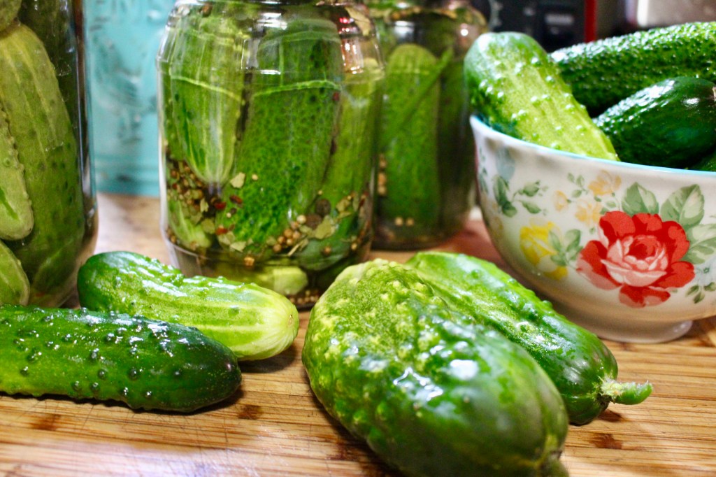 Once the cucumbers are firmly packed, fill the jar with the boiling brine, leaving about ¾ inch of head room at the top. Put on a tight fitting lid. Let sit on your counter for a couple of days, or place directly into the refrigerator after they have cooled. If you are only making a jar or two and find that you have leftover brine, you can store it in the refrigerator.