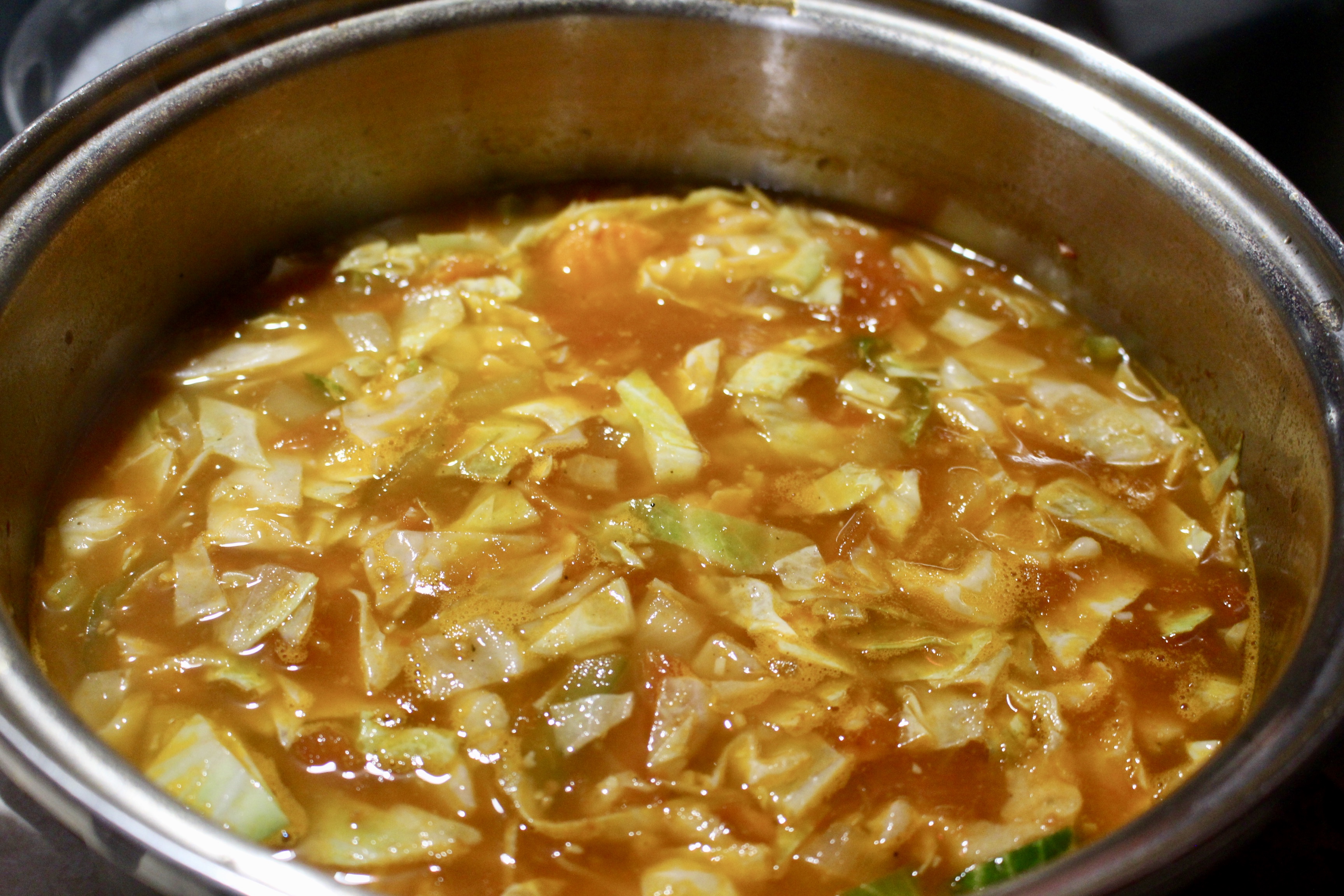 Last week, I came to the realization that I have quite a few jars left of tomatoes and tomato juice. Therefore, I thought it was the perfect time to make a pot of Cabbage Soup.