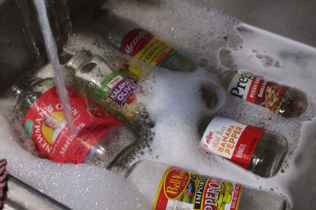 While my husband and I share the quest for a more natural and simpler life, I have a confession to make, I am a glass jar hoarder. While I do have an impressive collection of Mason jars for canning, much to my husband John’s dismay, I have taken to saving every single jar that crosses our kitchen. I even find jars in my mailbox at work that co-workers have saved for me (along with egg cartons for our hens’ eggs). I may even be guilty of buying certain foods at the grocery store because I fancy the jar it comes in. It is true that we have boxes of jars in our barn, John’s shop, and in our basement.