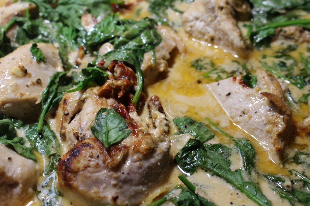 I served this dish with a side of penne pasta and a simple marinara sauce. It was the perfect tangy accompaniment to the rich, cream sauce. While I have never been to Tuscany, in my head, this dish would be the perfect Tuscan meal. I am looking forward to recreating it with various vegetables from our garden. I imagine it would taste lovely with the addition of kale, squash, and green beans.