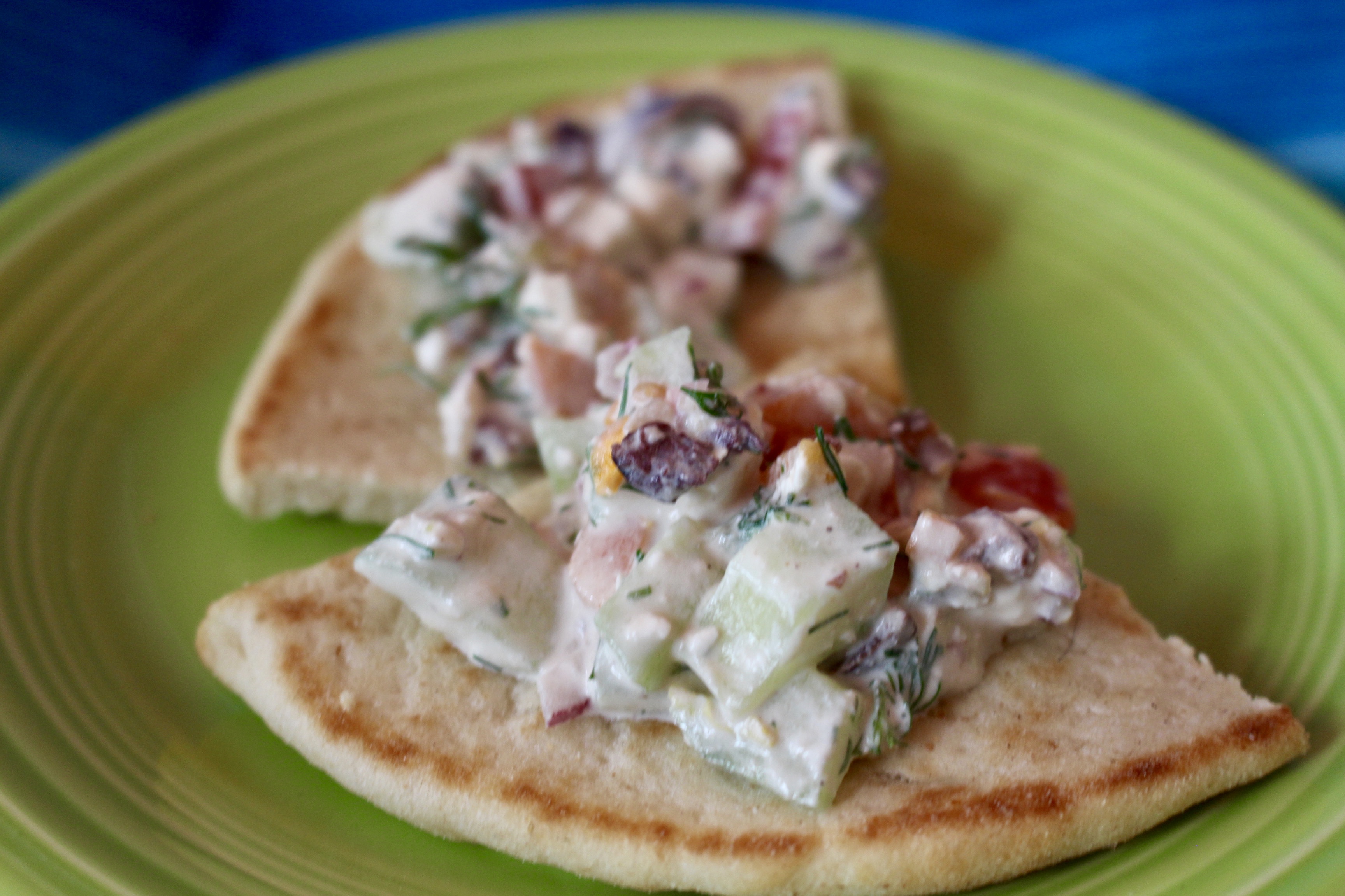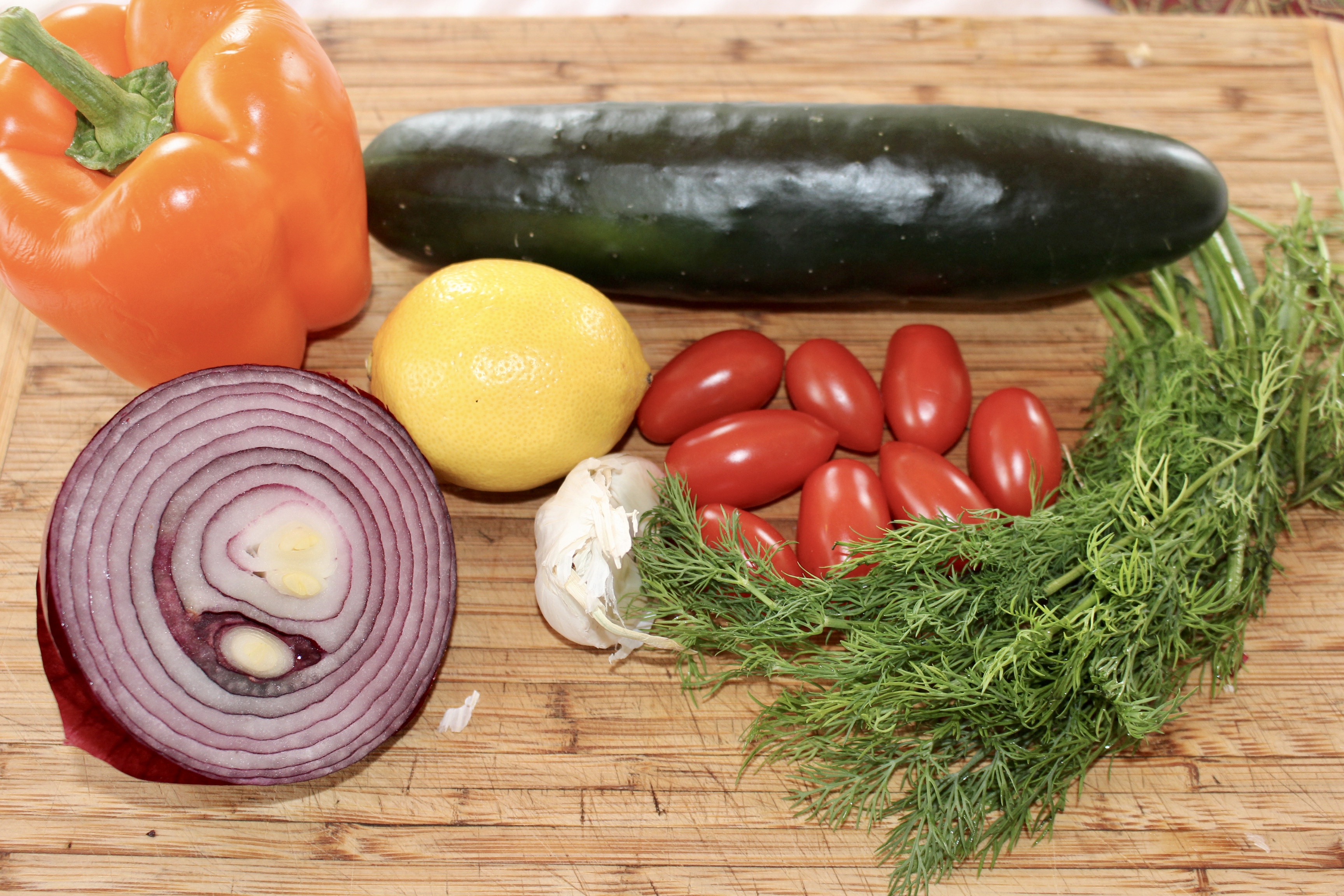 While I look forward to harvesting our own greens for salads, I do try to eat fresh salads throughout the year. If I had to choose one salad to eat every day, it would probably be a Greek salad. I worked at Vango’s for seven years and their Greek salad was (and still is) one of my favorites. Add a piece of pita bread and a side of tzatziki sauce and I am a happy woman.