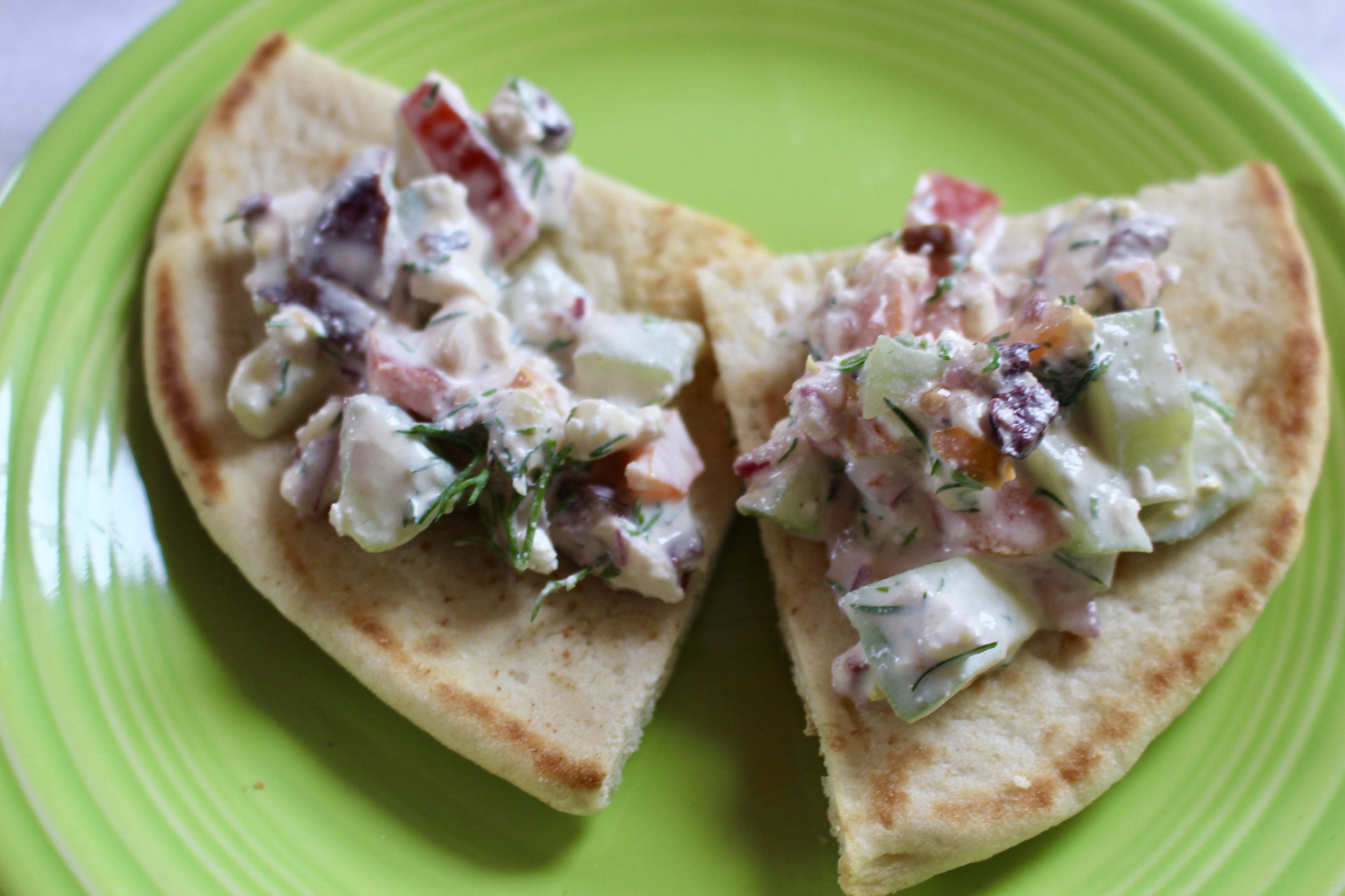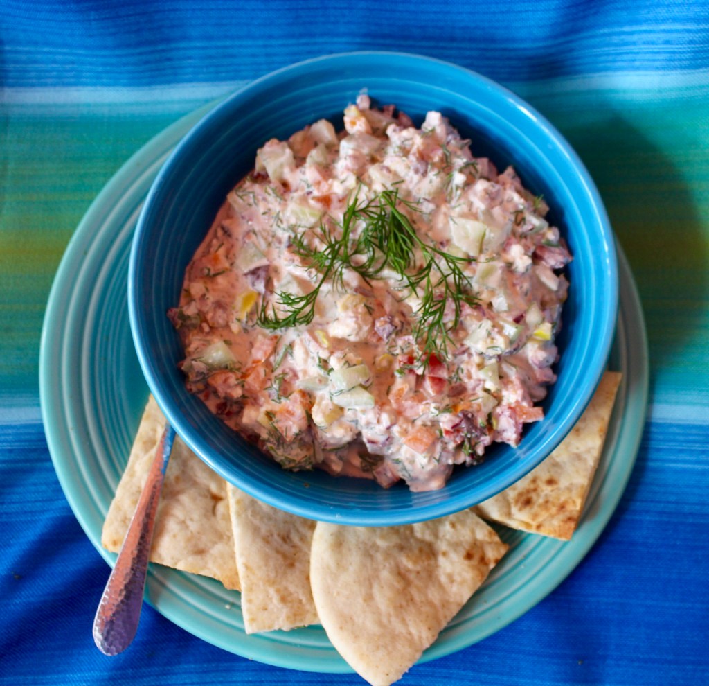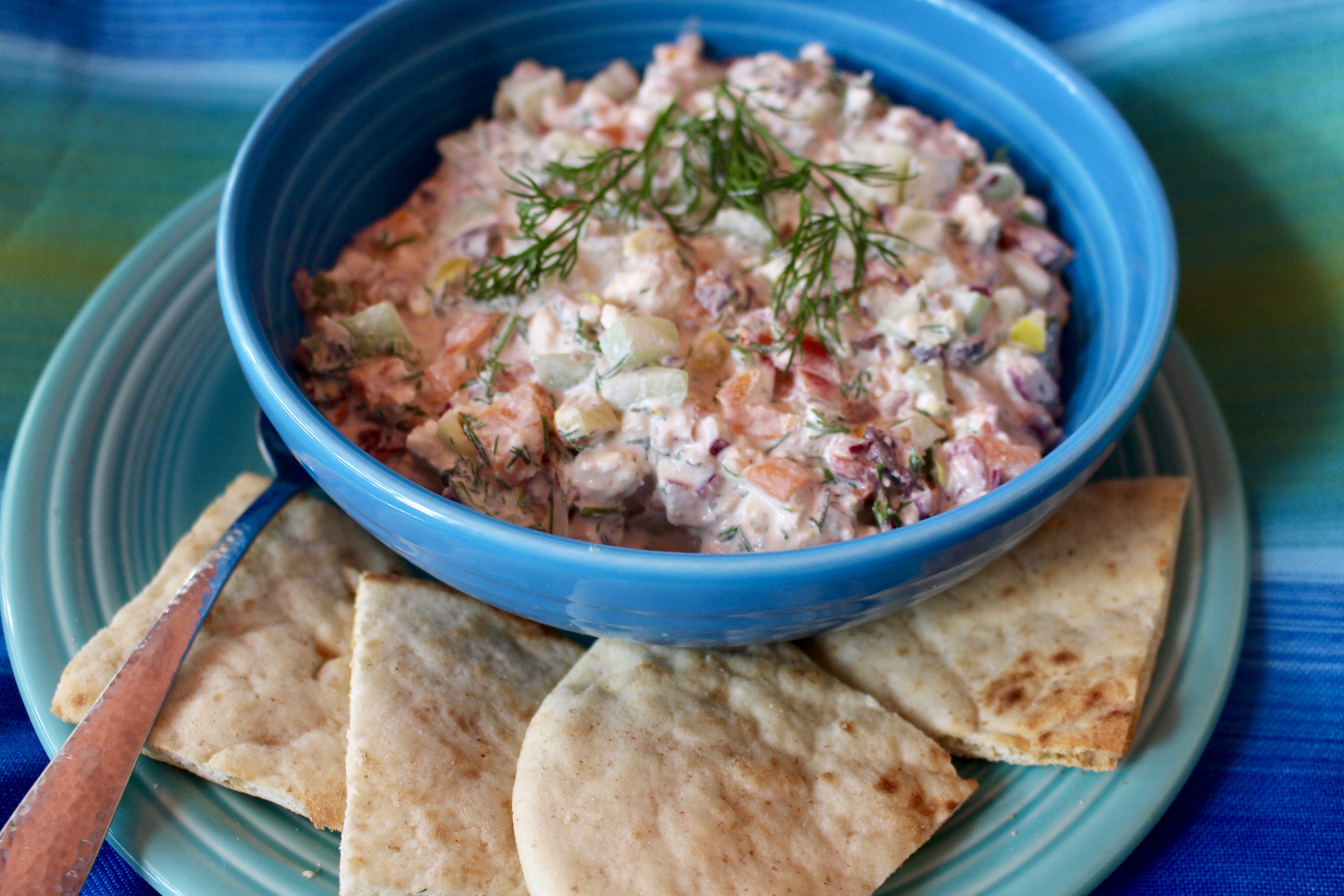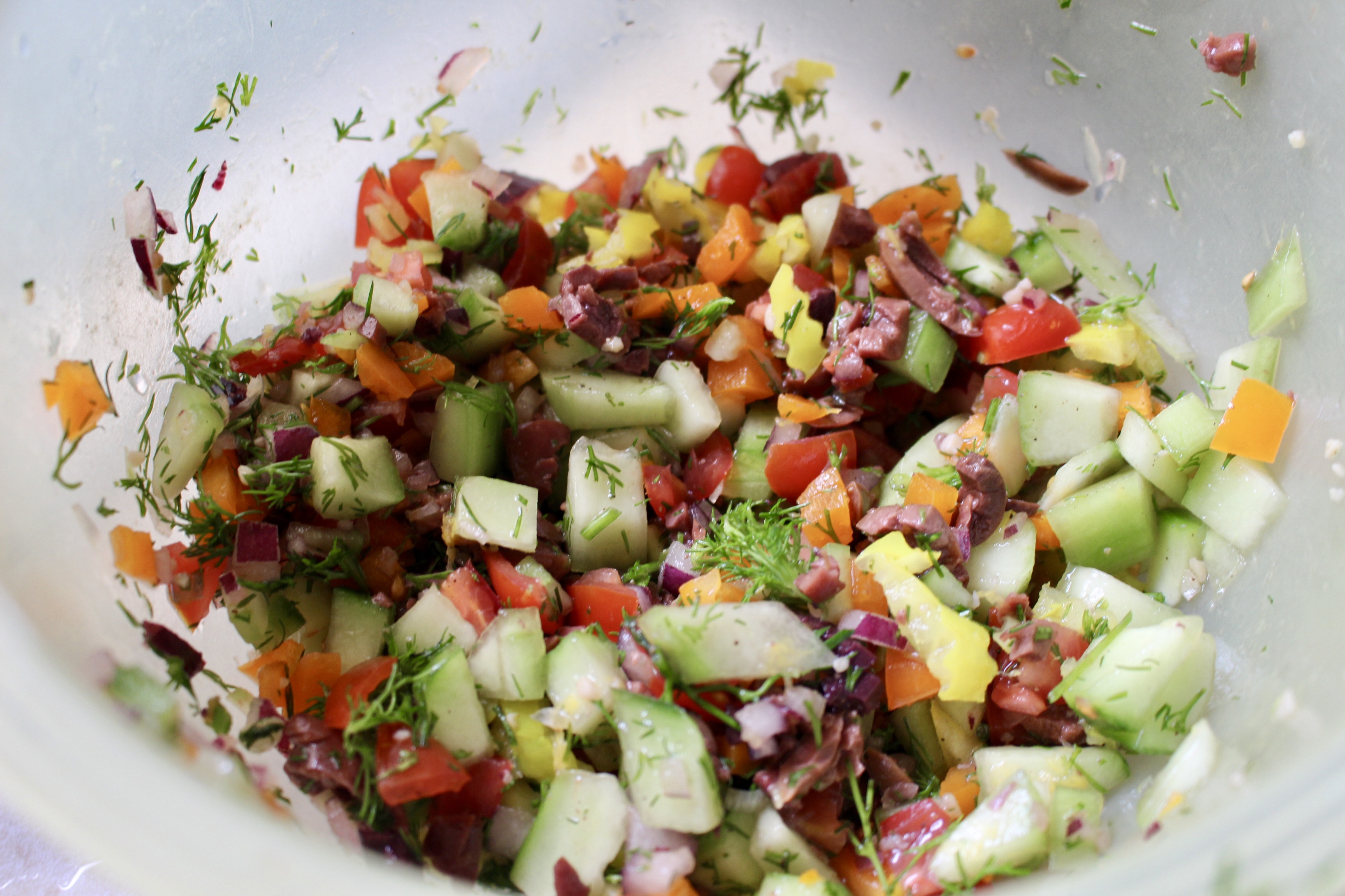 This winter I was craving a Greek salad and came up with the idea to combine all the ingredients into a “dip” that could be enjoyed with crackers, pita bread, as a bagel spread, in a sandwich or lettuce wrap, with fresh vegetables, on top of a bed of greens, or as a topping for fish, steak, or chicken. The result was exactly what I was looking for and I am excited to share it with you. While it’s great for a gathering of friends and family – it will keep several days in the refrigerator. The key to this recipe is to chop everything into small pieces and make a couple of hours before serving so the flavors can marry.