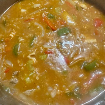 It all started with leftover onions and peppers from Lukas’ football team dinner and somehow turned into the coziest, most flavorful soup ever. My husband John took one bite and said, “Write this down before you forget!”