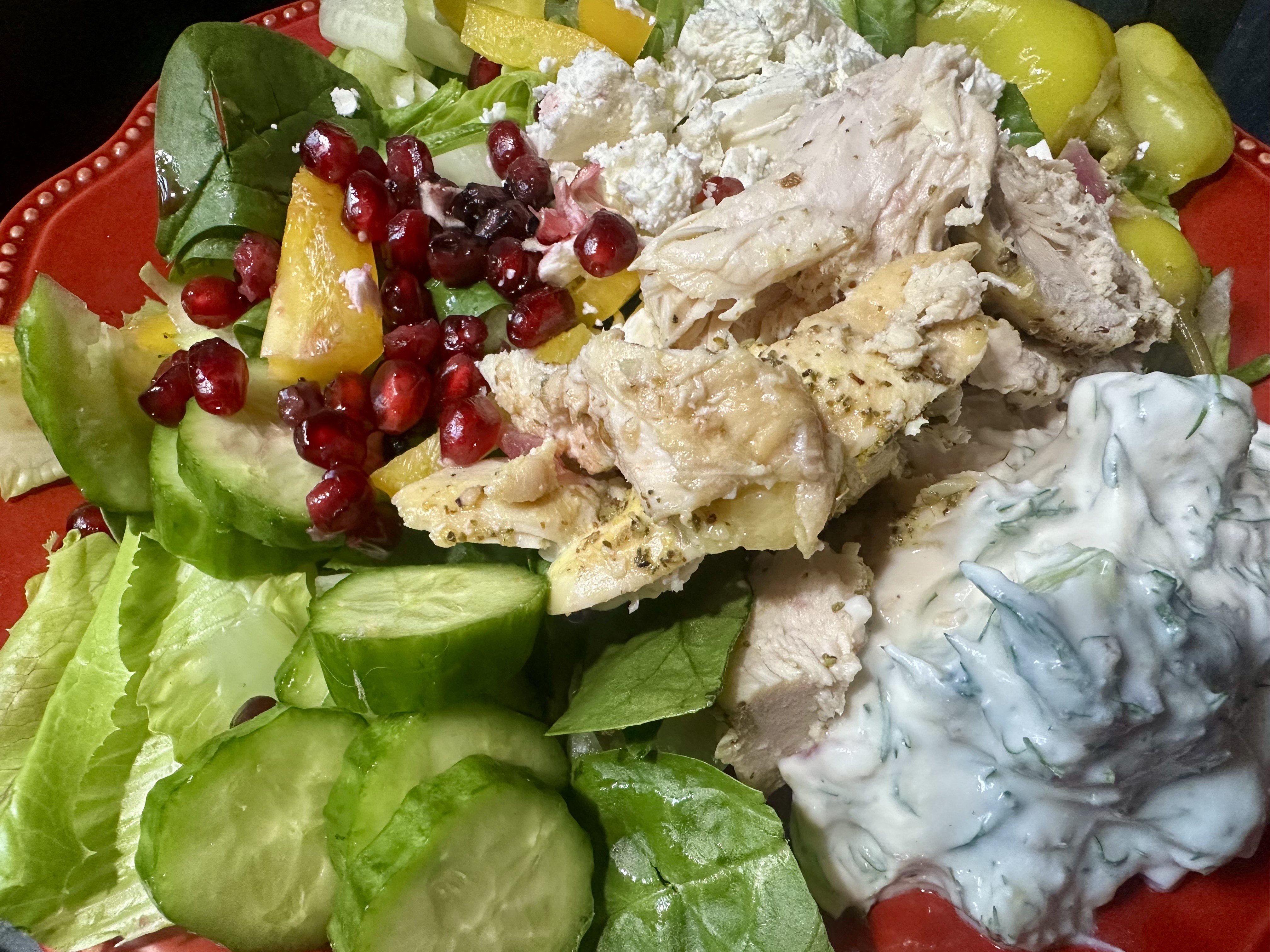 Greek Chicken Salads with Cucumber Tzatziki Sauce