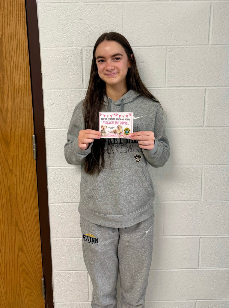 This is the 7th year of this tradition with the MPD’s K-9 Unit. Each year an Advanced Digital Design Applications student is chosen to create a special piece of artwork for the Valentine tradition.